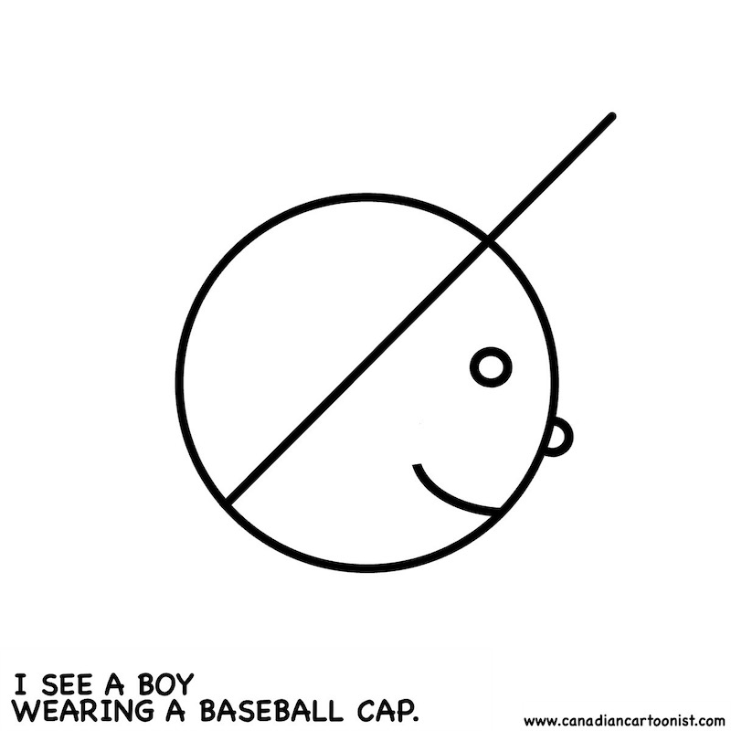 The first frame is a minimalist drawing made up of lines and circles. The second frame reveals one option of what could be seen. Please comment about what you see!
