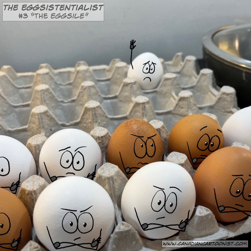 The EGGsistentialist #3 – The Eggsile April 4, 2022April 6, 2022 | Richard Rempel Crack on Previous Want to check out my other comics? Just go to the menu and select. Share this: Share on X (Opens in new window) X Share on Facebook (Opens in new window) Facebook Like Loading...